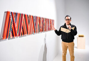 “The giant device ‘Symmetrical Garden’ slowly rotates in the rhythm of precise calculations, flexibly avoiding like life, and the metallic mechanical sound seems like a distant and mysterious whisper.”Jin Binghao