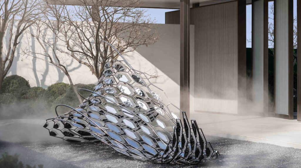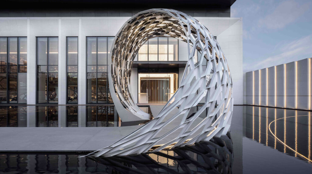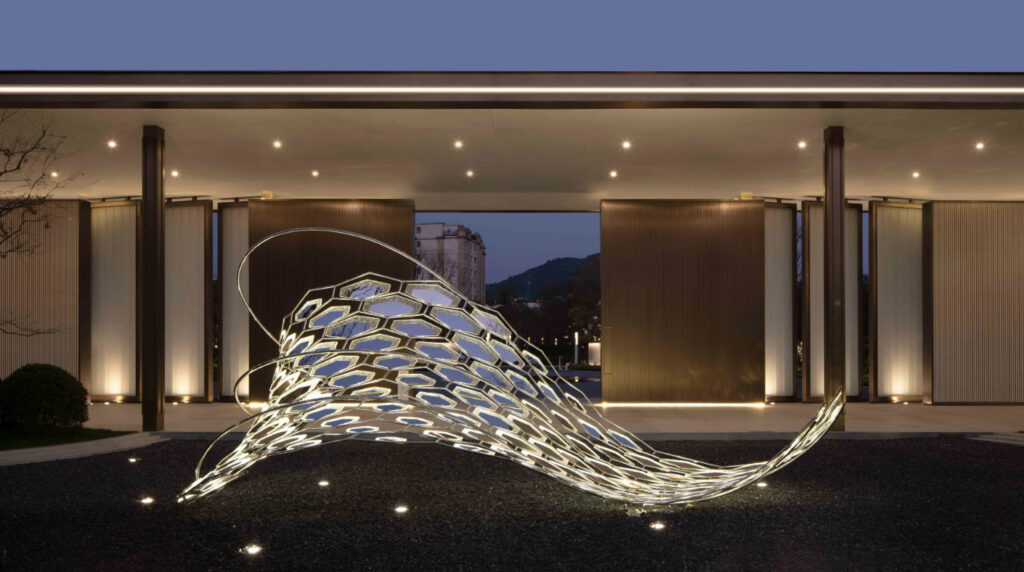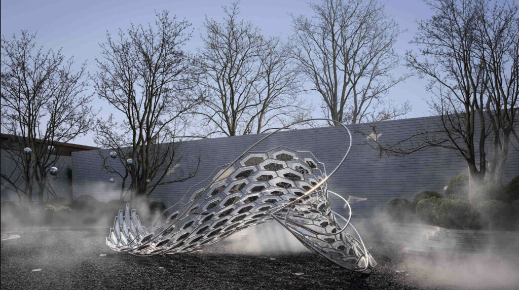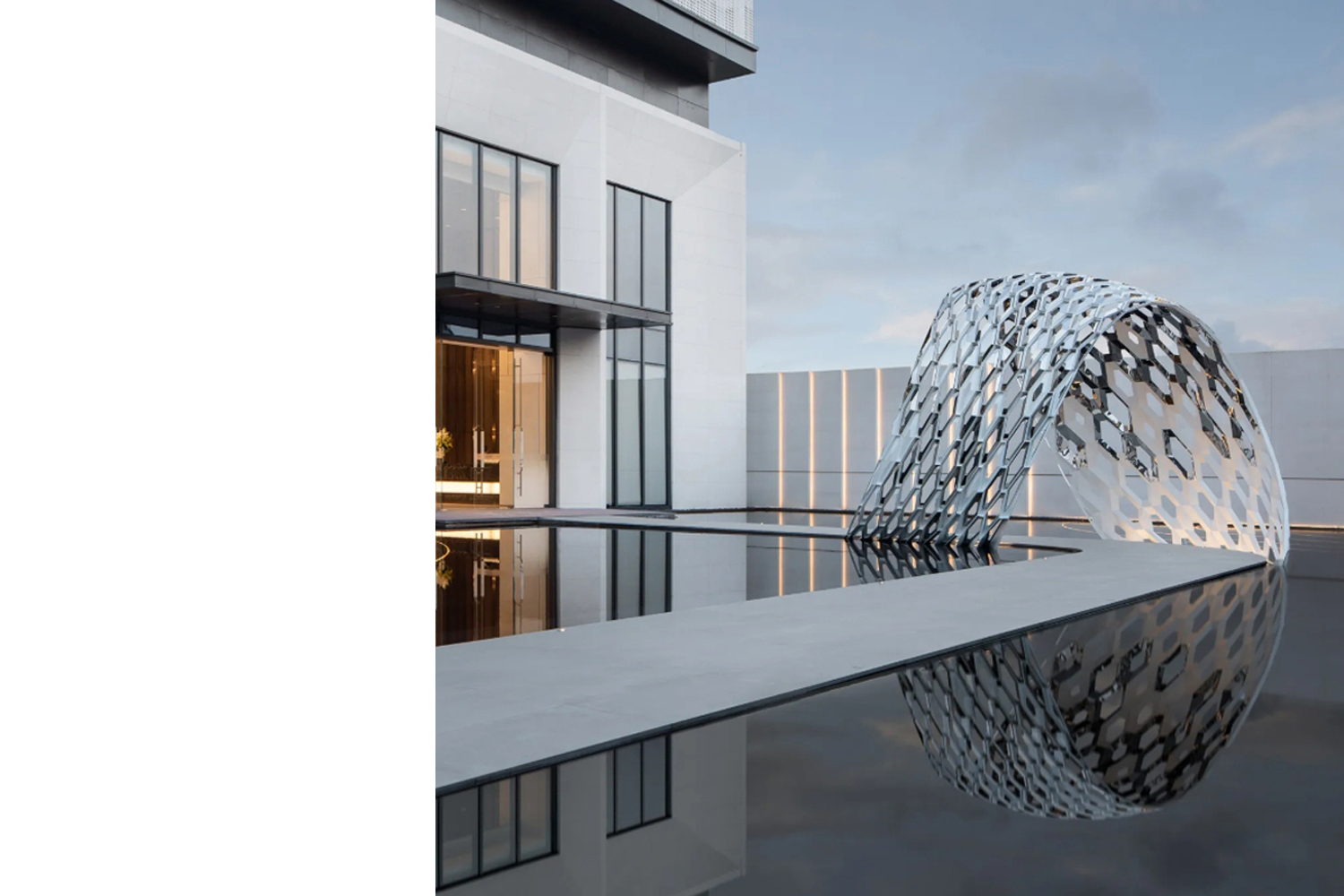 This series of art installations is designed and created for the exhibition area of the R&F Fuyunshan project, aiming to transform people's perception of nature and understanding of themselves into a state of emptiness. Stay away from worldly troubles, break free from the shackles of form, wander between this realm, and seek the realm of transcendence. Parameterization, as an artistic technique that visualizes logical thinking, collides with the new Chinese style that represents artistic conception and philosophy, integrating the environment with artistic installations to create an immersive art that allows people to approach and appreciate art, while also becoming art.