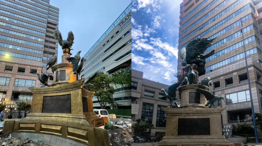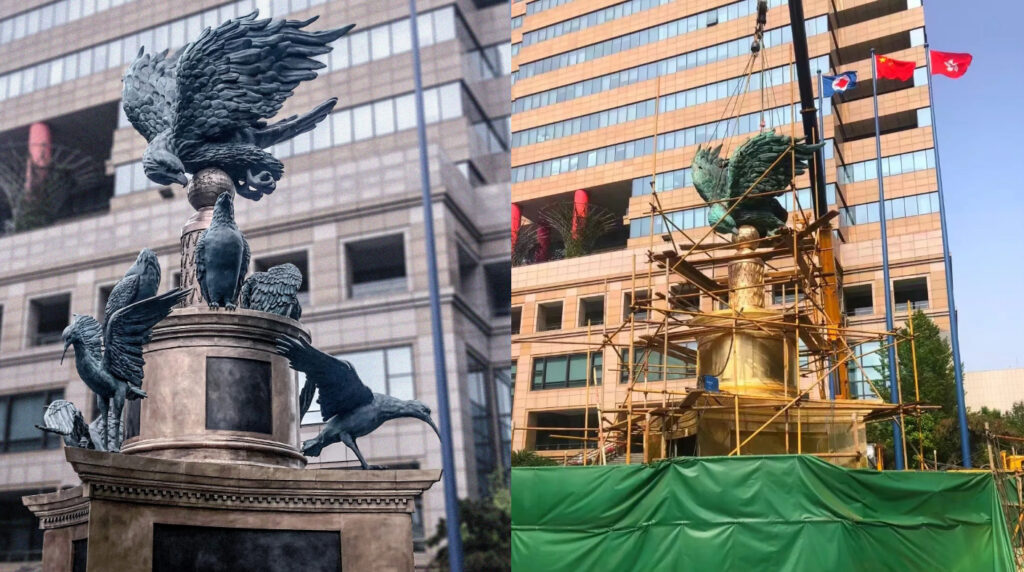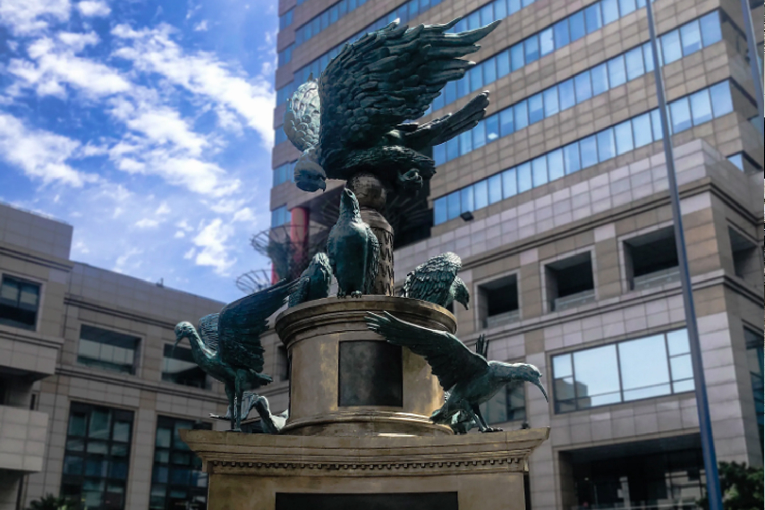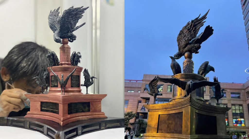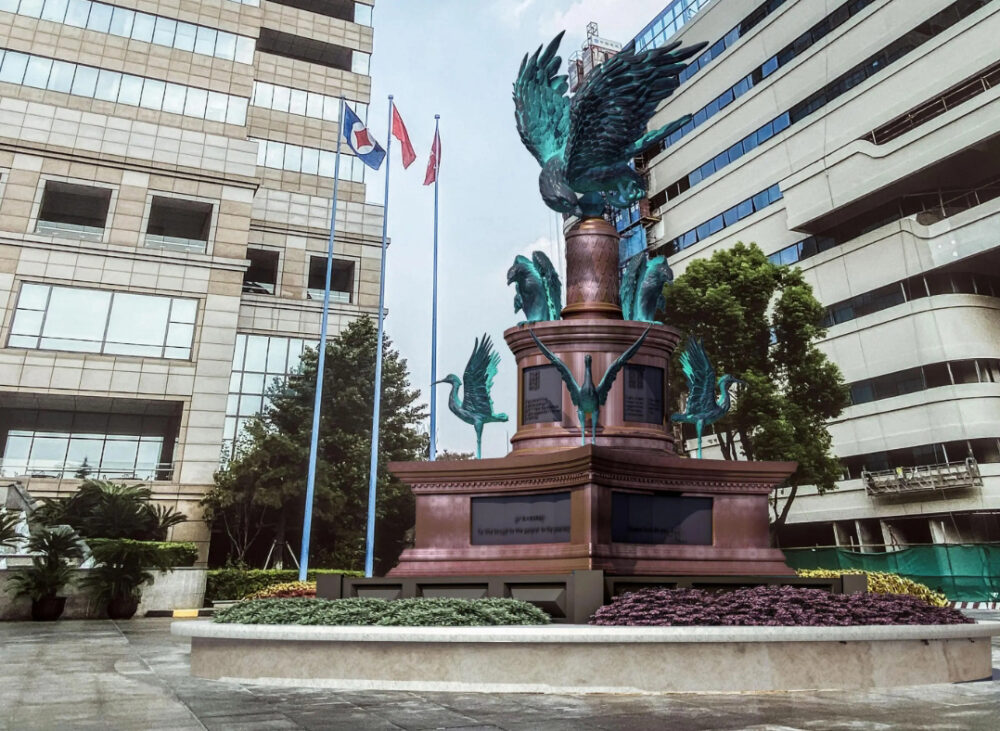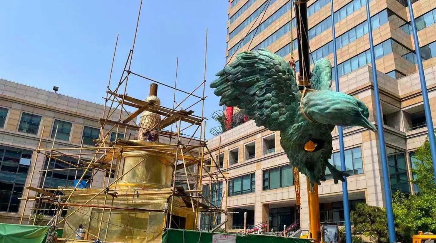 This work is made of pure copper, with a total height of 12 meters and an overall European classical style. It is located at the headquarters of Shanghai Minimally Invasive Group. A 12 meter high sculpture should be erected on the disc, made of pure copper, with a classical overall style, reflecting the "fire eagle" and "fire bird" of the enterprise.